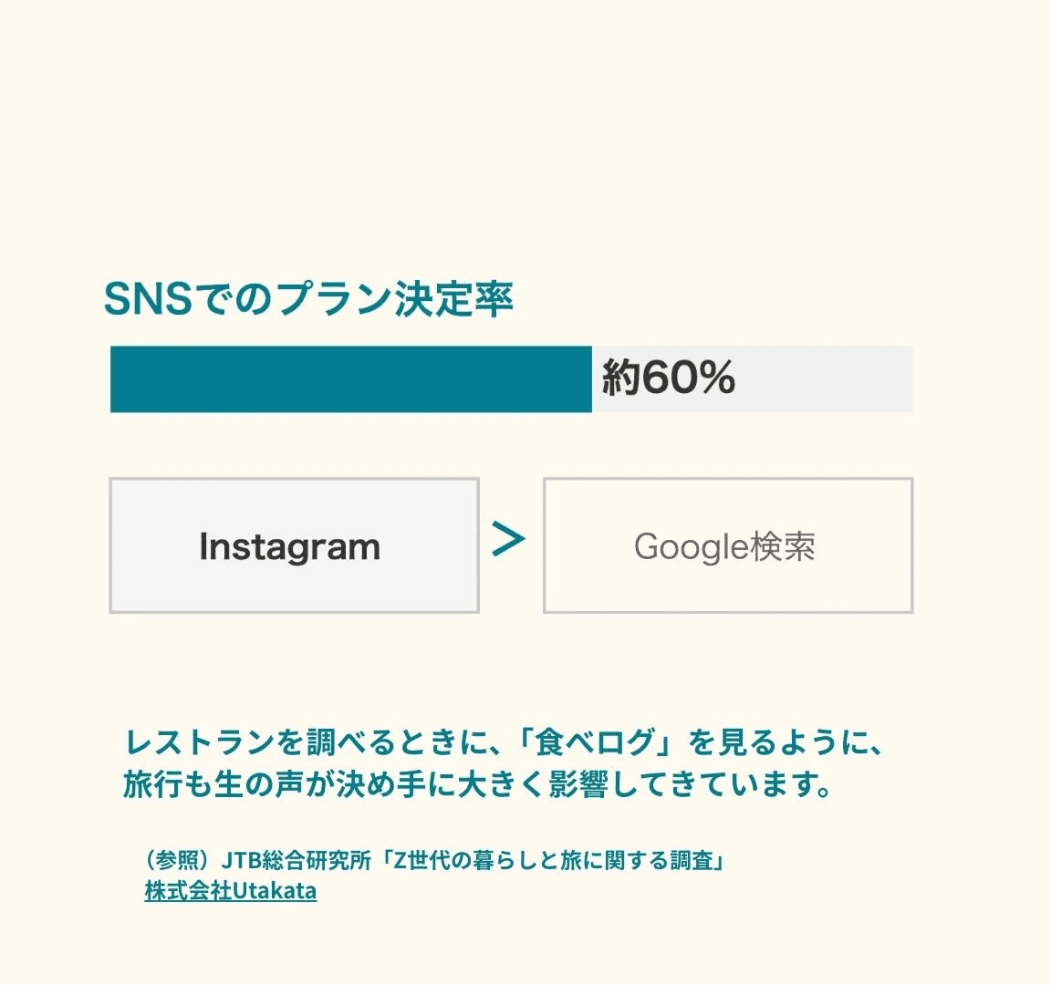 Z世代の約60%が旅行プランの決定にSNSを活用しており、その中でもInstagramは「Google検索」を抑えて、最も利用される情報源となっています。